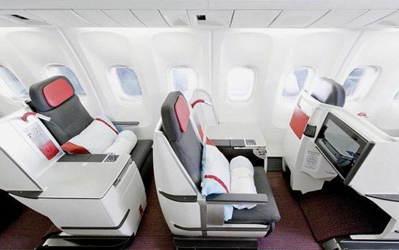 Come aboard and spend a holiday in Austria. The Austrian Airlines colours of white, red and light blue dominate the design and have a calming and stress-reducing effect. The Business Class cabin has been furnished with highly luxurious material.