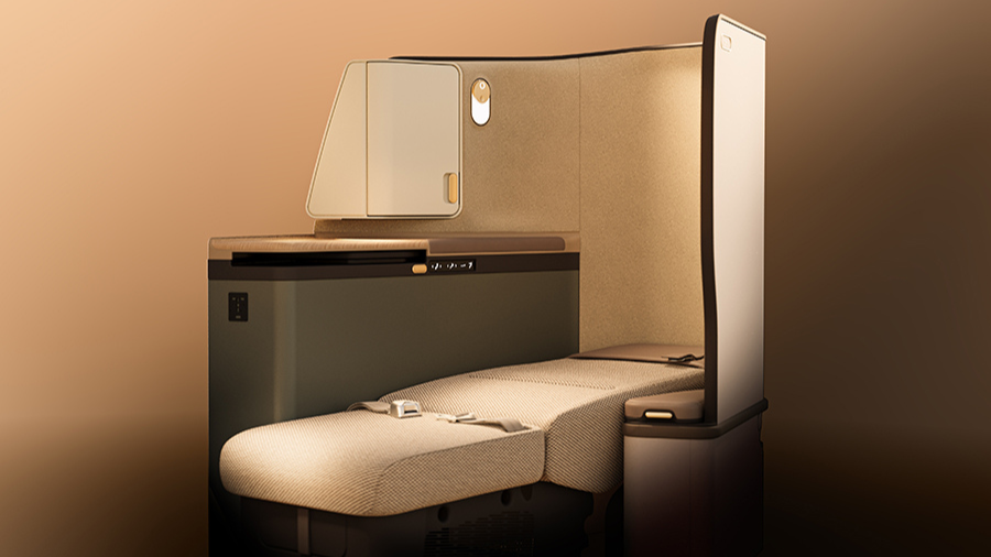 Enjoy the privacy of our award-winning Business seats, for work and relaxation alike. Privacy partitions, adjustable lighting, expansive tables, power outlets and one-click sitting and sleeping settings make the experience your own. When it’s time to sleep, indulge in the comfort of our fully flat bed and luxurious 400-thread-count Bamford bedlinen on long-haul flights.