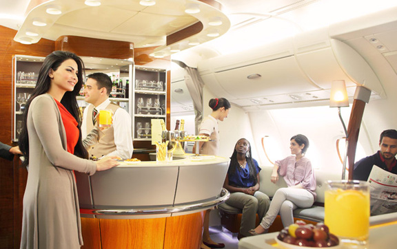 Emirates A380 First Class Social Area & Onboard Lounge