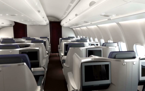 1-2-1 / 1-2-2 seat formation, 90% of seats with direct aisle access.
