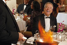 Onboard Cunard you have many choices when it comes to dining. Single Seating dinning is available, which means guests can choose to dine anytime between 7 and 9pm. On Queen Mary 2 and Queen Elizabeth, the Britannia and Mauretania restaurants respectively offer a choice of an early or a late sitting for dinner. All other restaurants are single seating dining. On both Queen Mary 2 and Queen Elizabeth, your accommodation is paired with a specific restaurant for your formal dining arrangements. All ships offer alternative dining options: Kings Court & Todd English Restaurant on Queen Mary 2 and the Lido on Queen Elizabeth.
