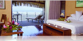 Beach Suite Bungalows Inspired by traditional Polynesian fare, the Beach Suite Bungalows are situated on a white sand beach gently sloping into the lagoon, under the shade of the coconut trees.