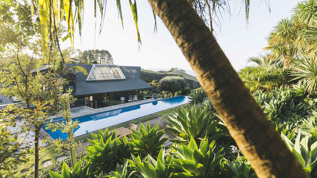 The Eyrie is situated high up in native bush overlooking the ocean and out to Waitangi, Paihia and the Islands of the North. This luxury villa features three bedrooms with en-suites, a home theatre and an 18 m heated infinity pool. The gourmet kitchen overlooks the private and secluded garden, surrounded by tropical plants and alive with native birds.