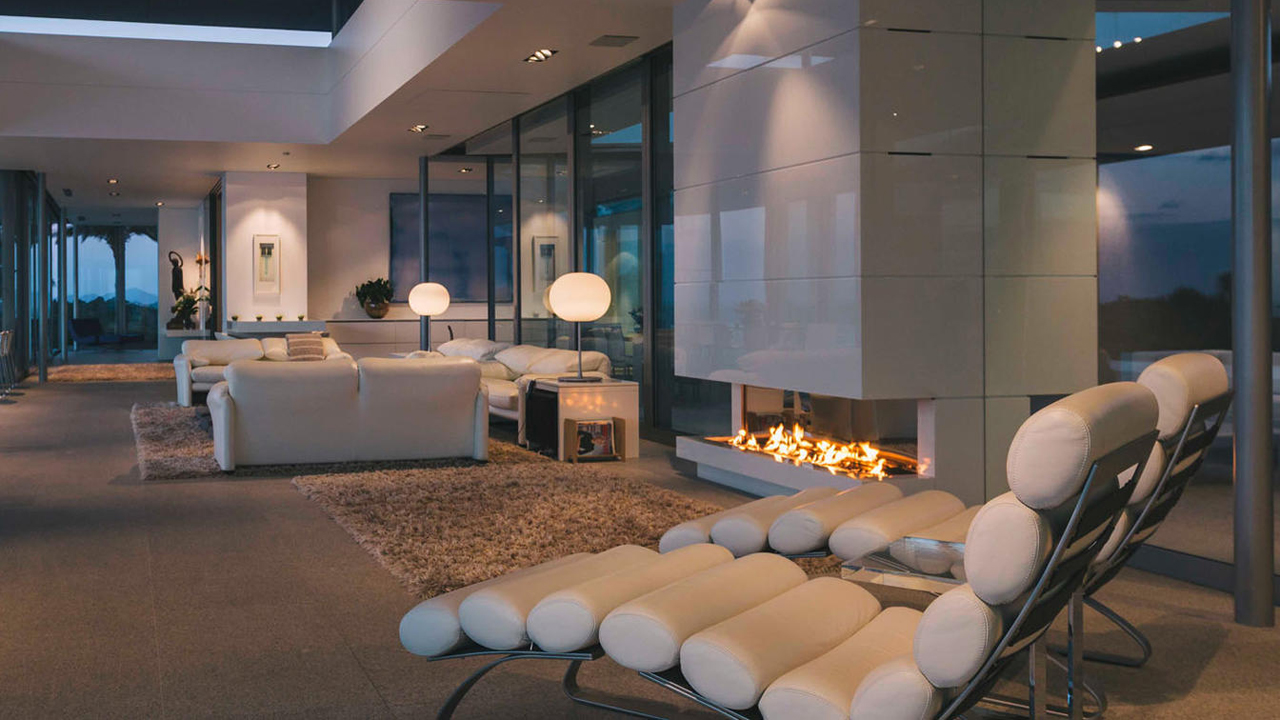 The large two storey glass-roofed living area transforms gracefully from relaxed living to formal dining and then into your own private movie theatre at night.