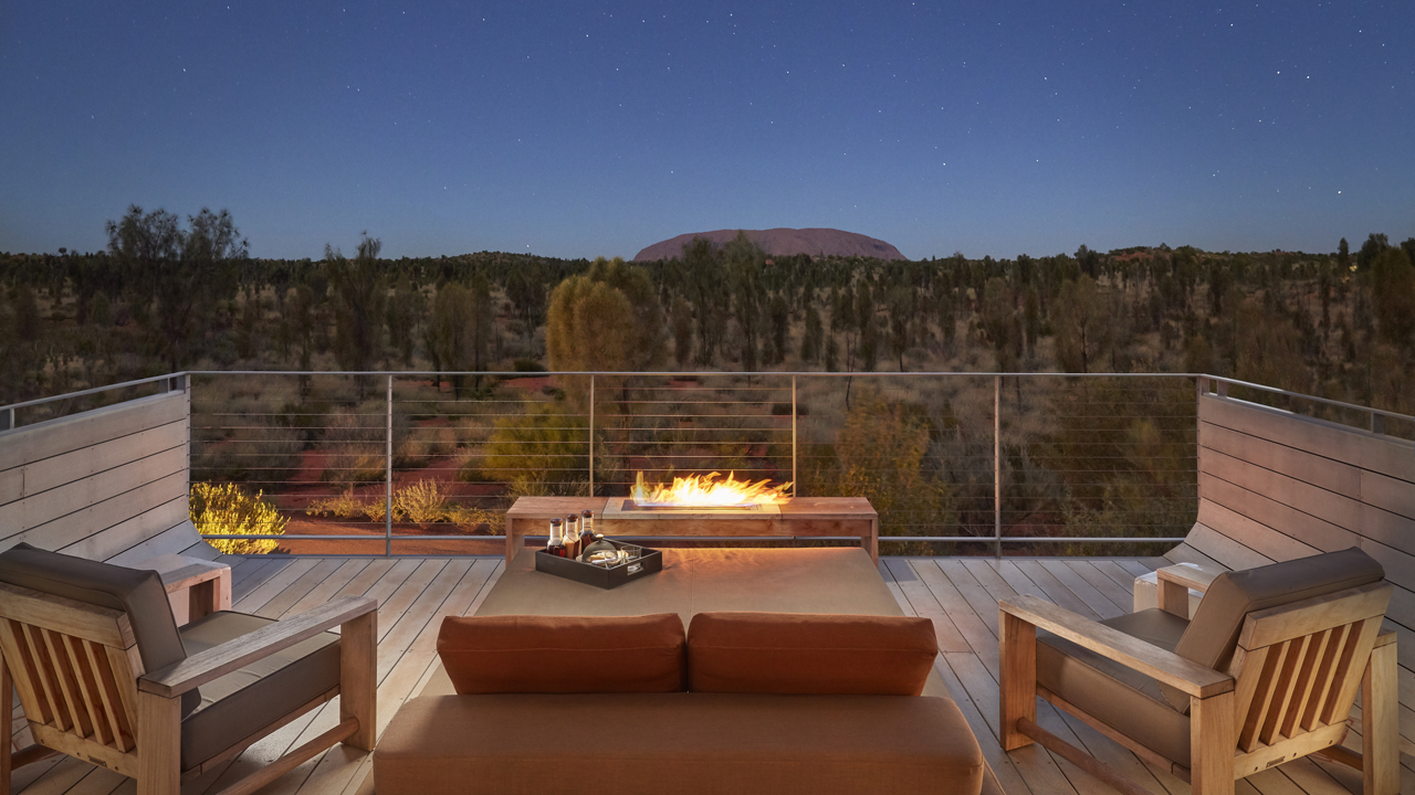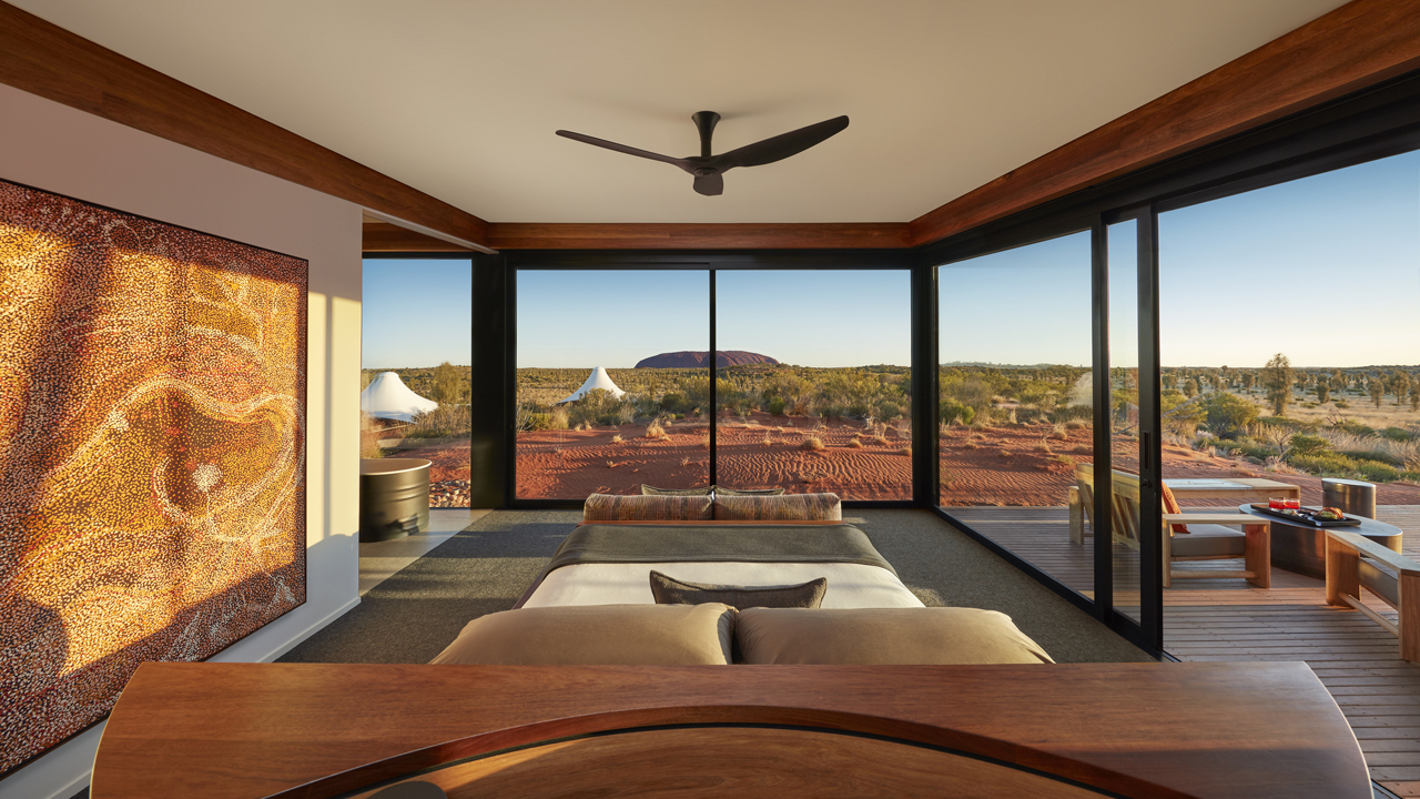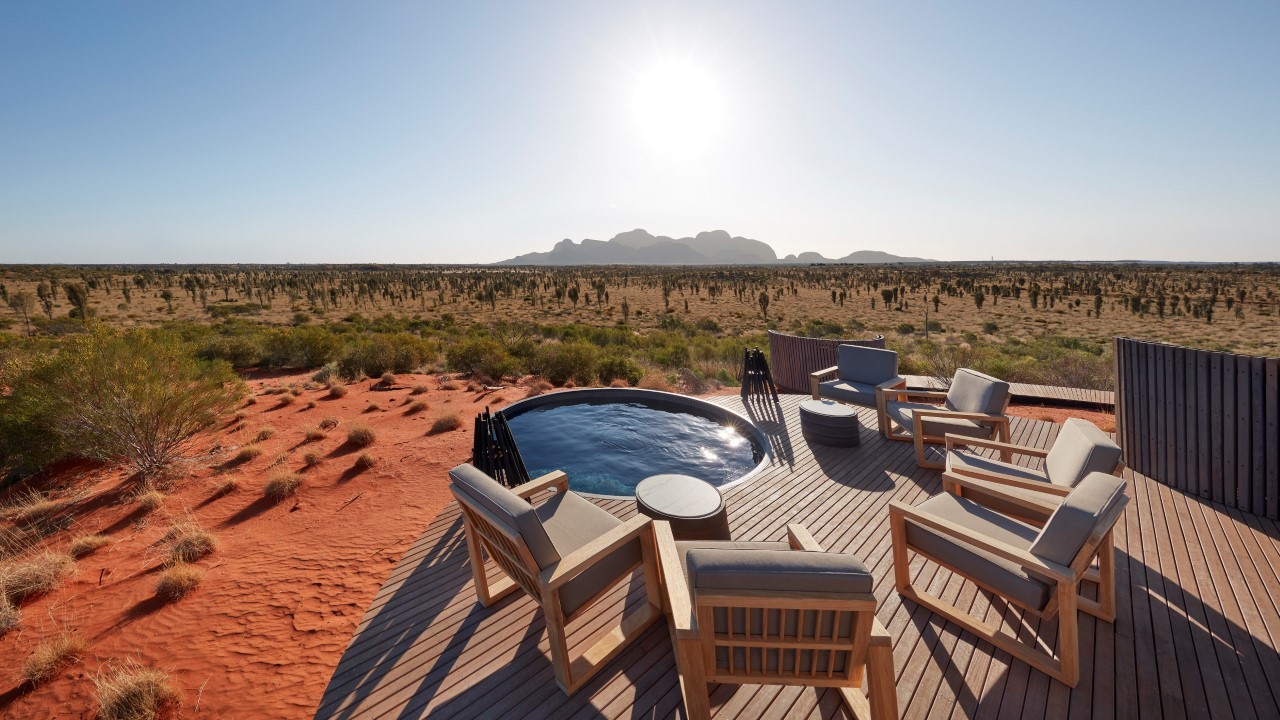 This indulgent outback experience dotted along the red dunes of the Central Dessert is home to 16 glamourous tented pavilions. With views to the famous Uluru, it’s the perfect setting to enjoy a glass of champagne on your private balcony in front of a crackling fire under a blanket of stars. Opt for the Dune Pavilion for a truly deluxe experience with your own private plunge pool and daybed with views to Uluru and Kata Tjuta.