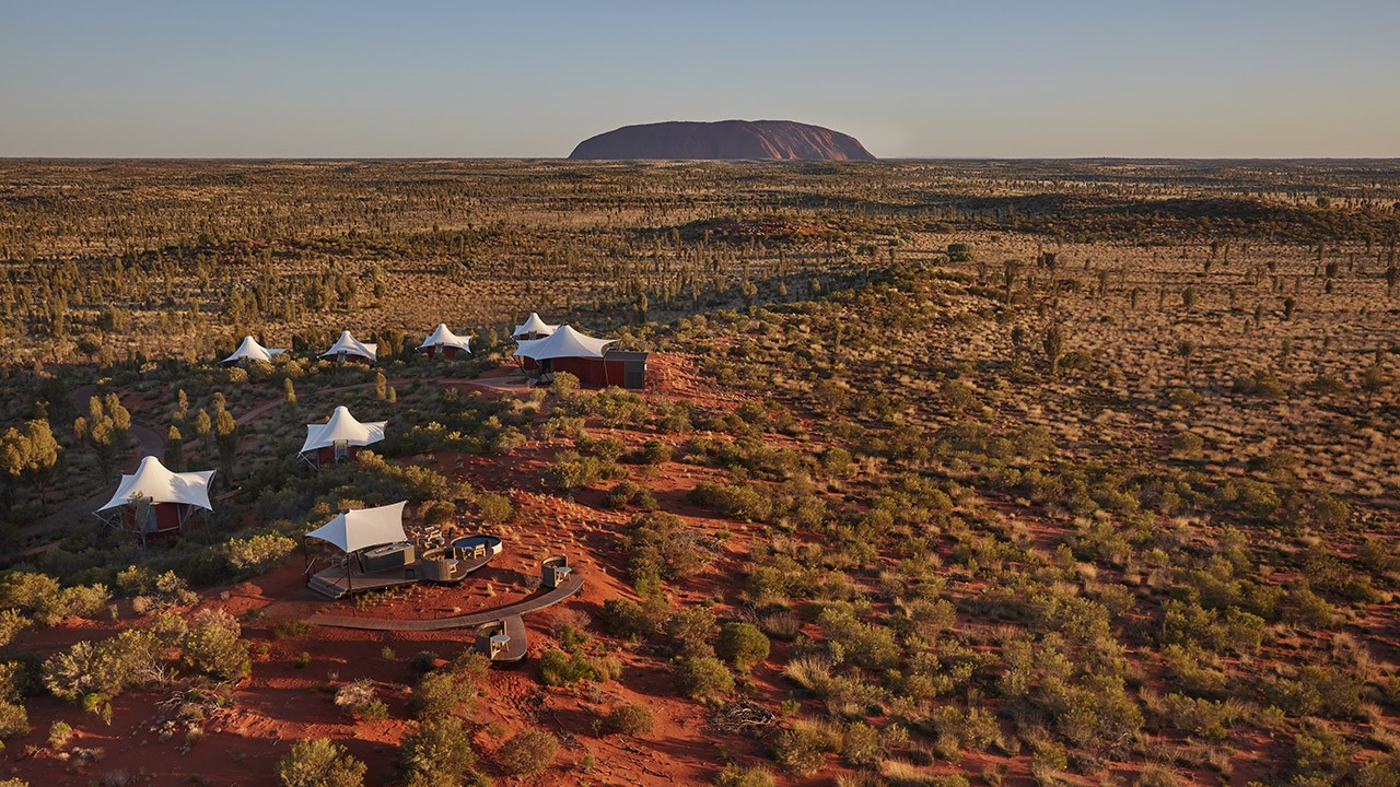 Longitude 131° combines the beauty of the Australian desert with five-star luxury. Fifteen luxury tents set on an isolated sand dune close to the border of Uluru-Kata Juta National Park.