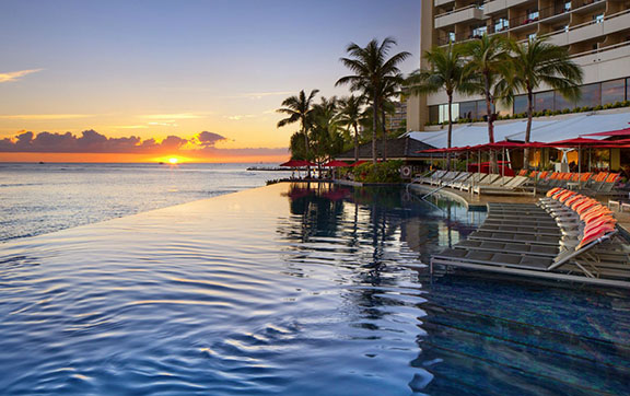 Enjoy the hospitality and style of Sheraton Waikiki whist relaxing by the pool and admiring the stunning views of the Pacific Ocean.